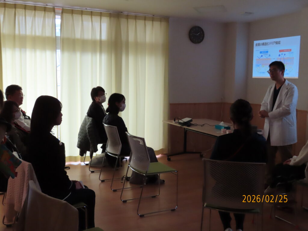 健峰幼稚園の園医をしてくださっている「藤が丘オーキッドファミリークリニック」の院長である伊藤 祐一先生においでいただき、「保湿剤の効果的な使い方」について講演をしていただきました。